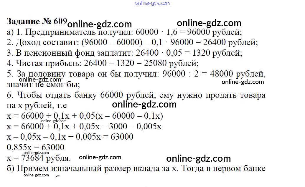Готовые домашние задания по Математике за 6 класс Учебник Зубарева, Мордкович 2015 - Упражнения 609