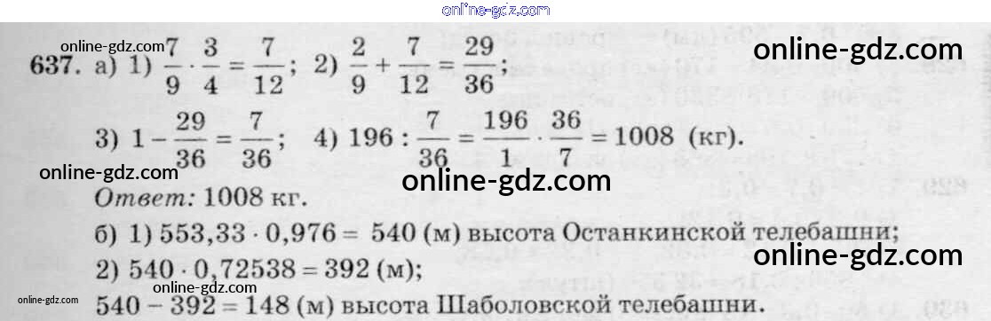 Готовые домашние задания по Математике за 6 класс Учебник Зубарева, Мордкович 2015 - Упражнения 637
