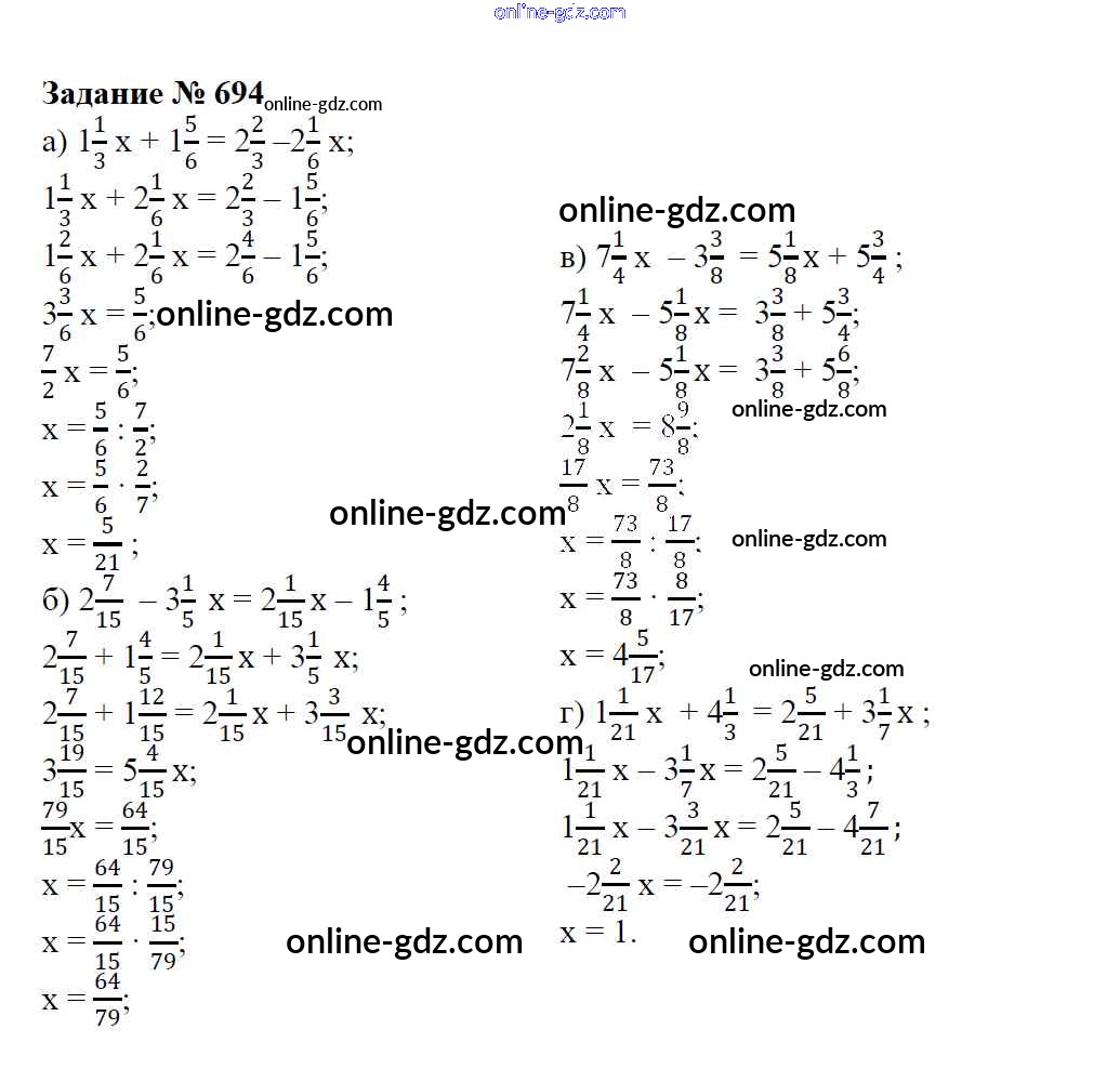 Готовые домашние задания по Математике за 6 класс Учебник Зубарева, Мордкович 2015 - Упражнения 694