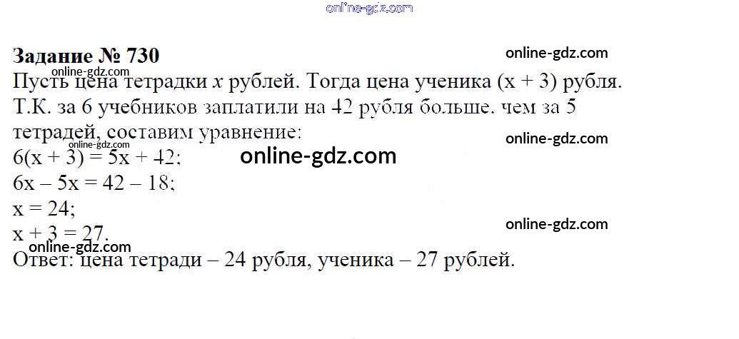 Готовые домашние задания по Математике за 6 класс Учебник Зубарева, Мордкович 2015 - Упражнения 730