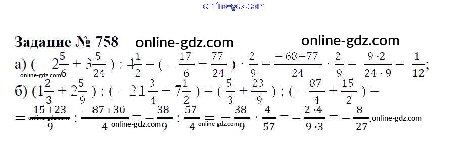 Готовые домашние задания по Математике за 6 класс Учебник Зубарева, Мордкович 2015 - Упражнения 758