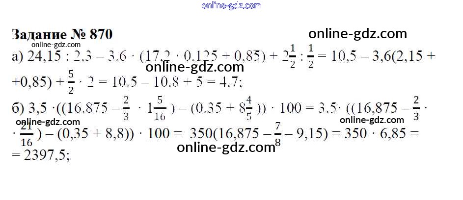 Готовые домашние задания по Математике за 6 класс Учебник Зубарева, Мордкович 2015 - Упражнения 870