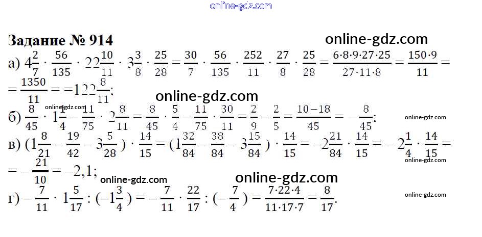 Готовые домашние задания по Математике за 6 класс Учебник Зубарева, Мордкович 2015 - Упражнения 914