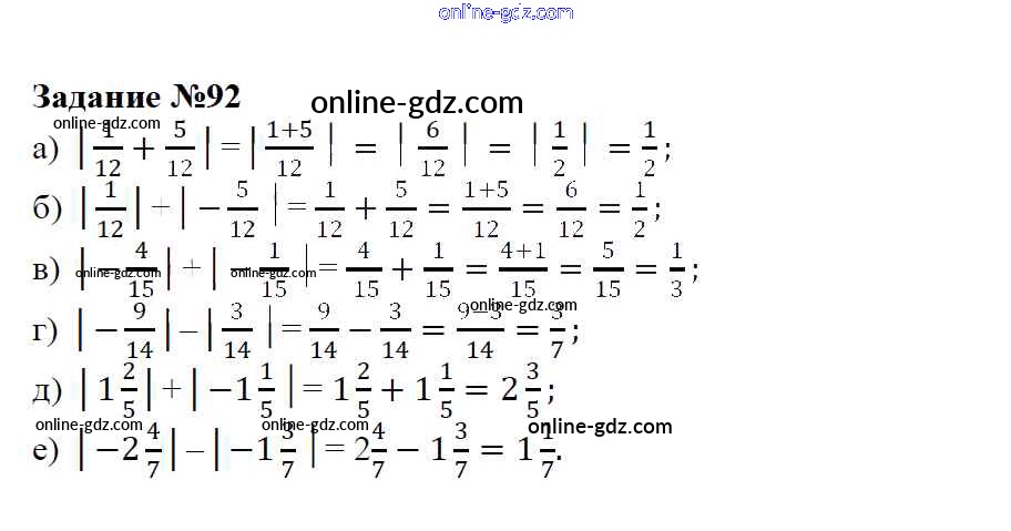 Готовые домашние задания по Математике за 6 класс Учебник Зубарева, Мордкович 2015 - Упражнения 92