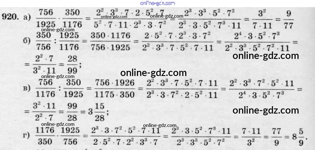 Готовые домашние задания по Математике за 6 класс Учебник Зубарева, Мордкович 2015 - Упражнения 920