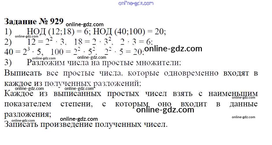 Готовые домашние задания по Математике за 6 класс Учебник Зубарева, Мордкович 2015 - Упражнения 929