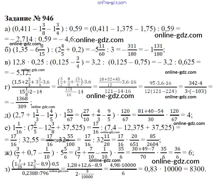 Готовые домашние задания по Математике за 6 класс Учебник Зубарева, Мордкович 2015 - Упражнения 946