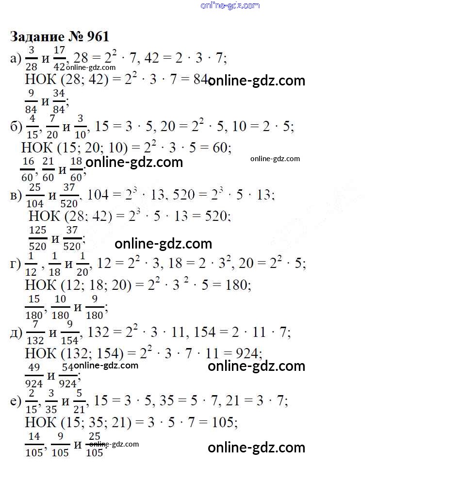 Готовые домашние задания по Математике за 6 класс Учебник Зубарева, Мордкович 2015 - Упражнения 961