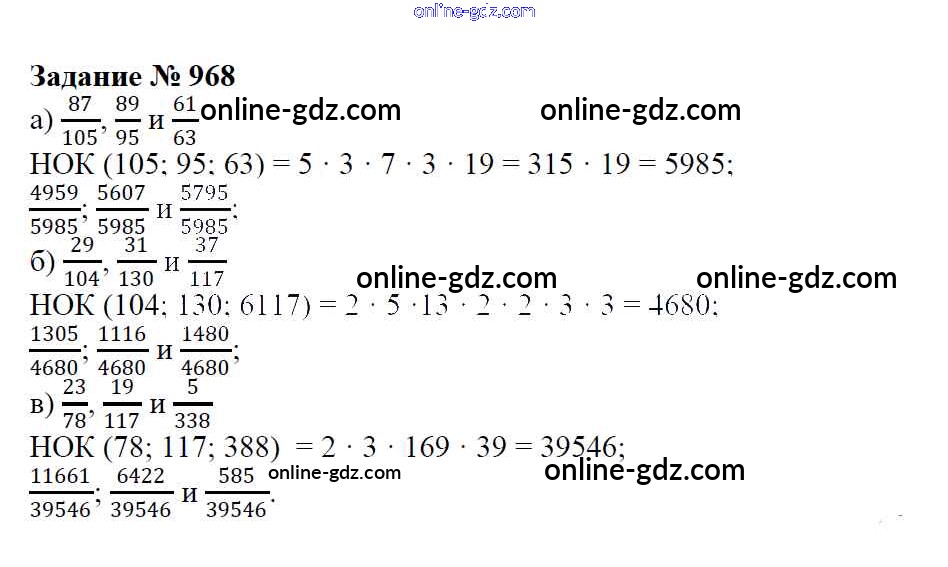 Готовые домашние задания по Математике за 6 класс Учебник Зубарева, Мордкович 2015 - Упражнения 968