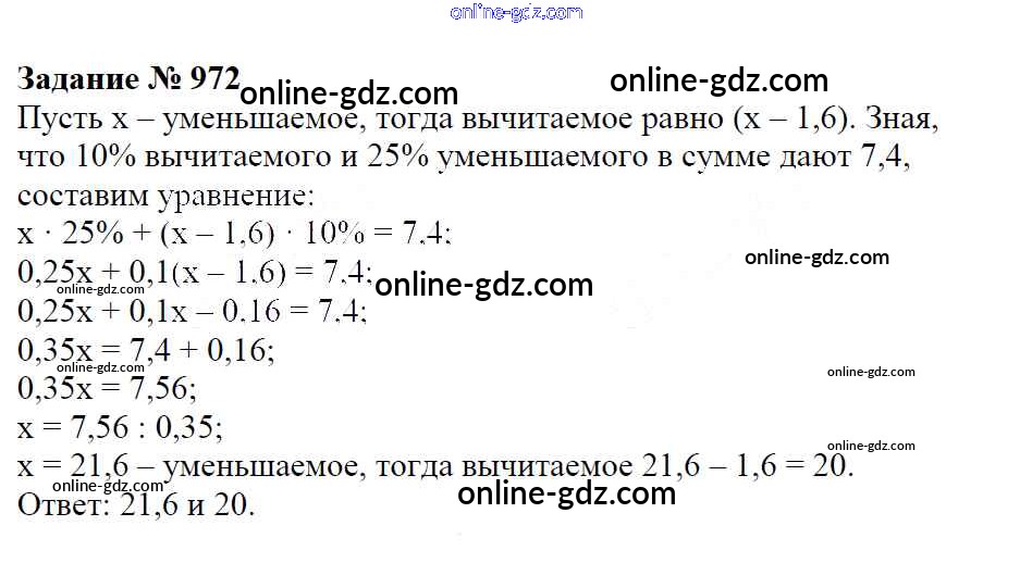 Готовые домашние задания по Математике за 6 класс Учебник Зубарева, Мордкович 2015 - Упражнения 972