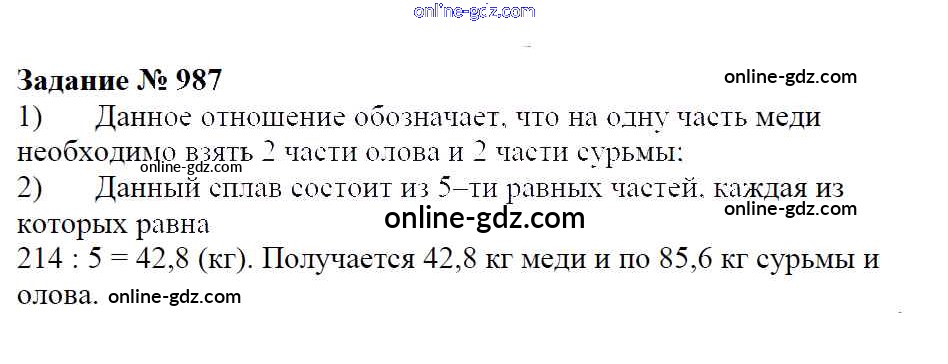 Готовые домашние задания по Математике за 6 класс Учебник Зубарева, Мордкович 2015 - Упражнения 987