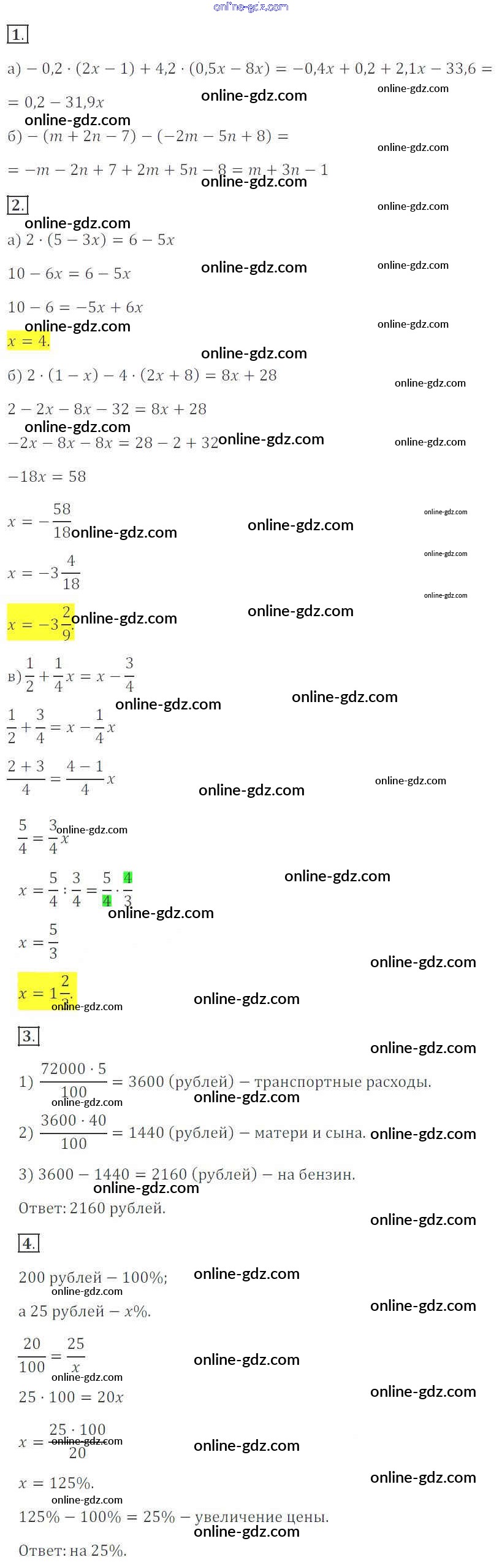 Готовые домашние задания по Математике за 6 класс Учебник Зубарева, Мордкович 2015 - Домашние контрольные работы 4