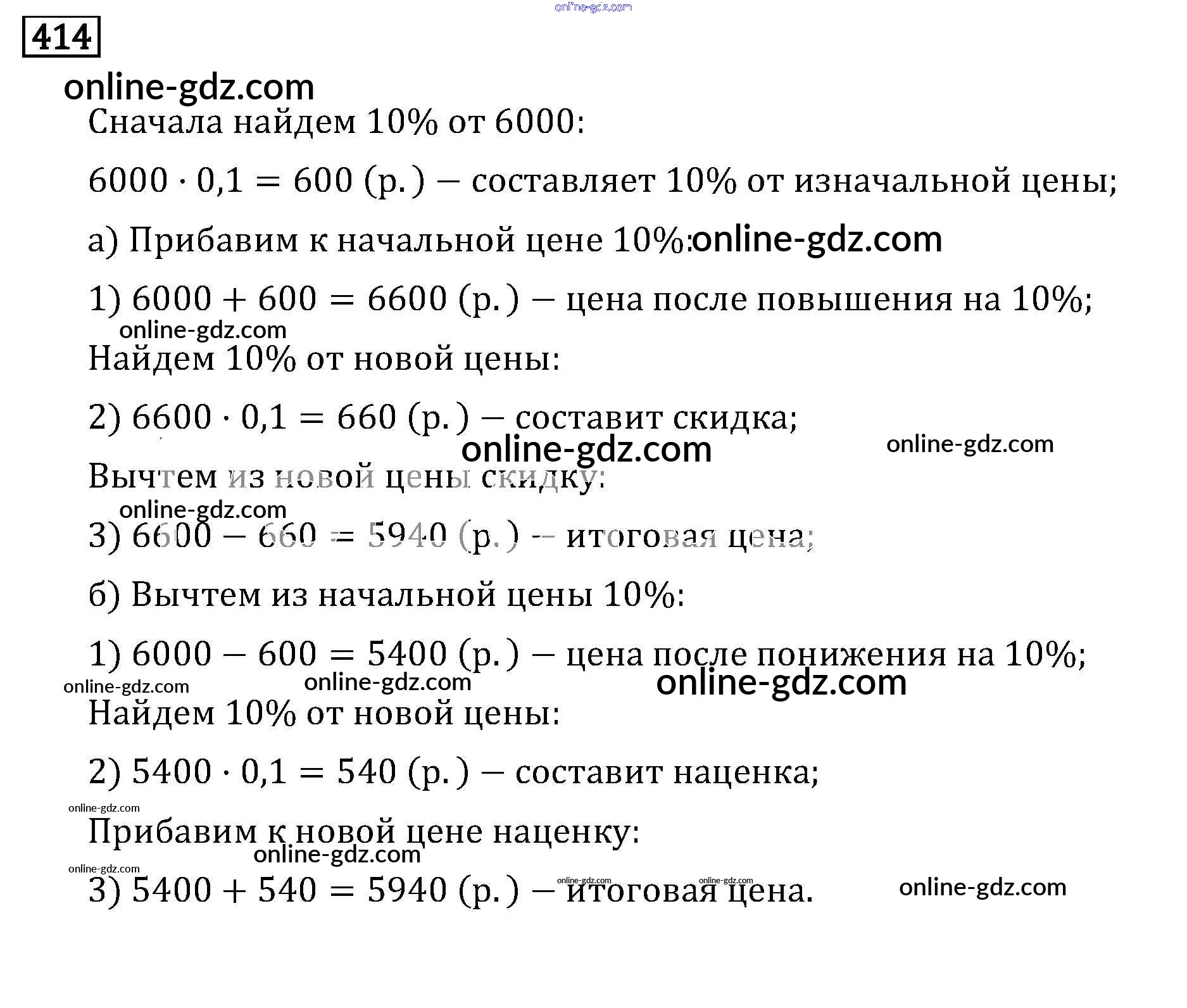Готовые домашние задания по Математике за 6 класс Задачник Бунимович, Кузнецова Сферы 2014 - Упражнения 414