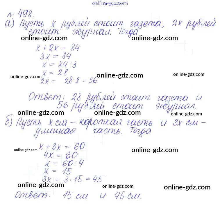 Готовые домашние задания по Математике за 6 класс Задачник Бунимович, Кузнецова Сферы 2014 - Упражнения 498
