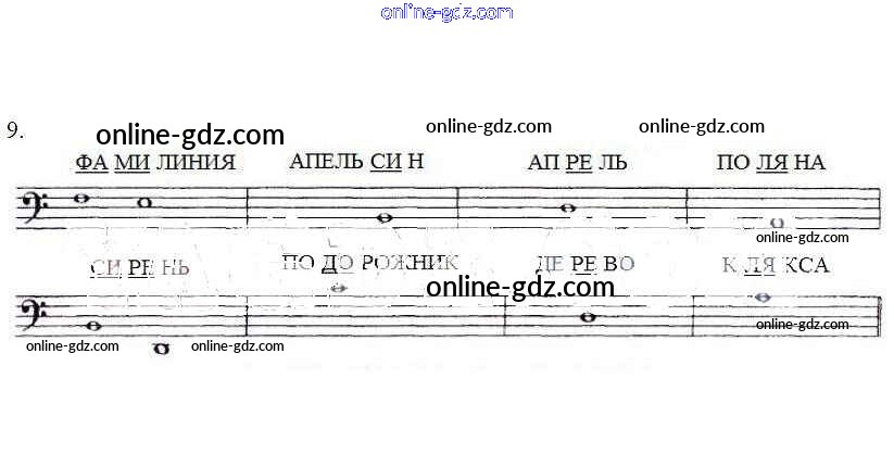Готовые домашние задания по Музыке за 1 класс Рабочая тетрадь Калинина 2017 - Ноты в басовом ключе 9