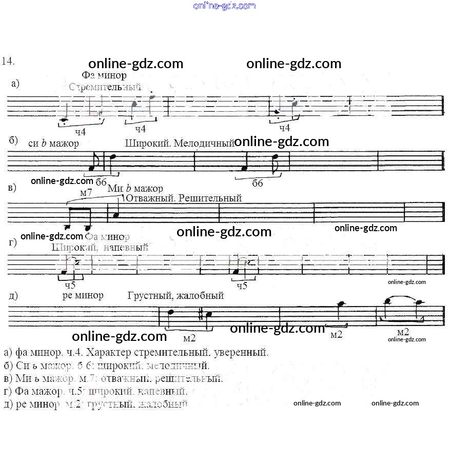 Готовые домашние задания по Музыке за 4 класс Рабочая тетрадь Калинина 2016 - Построение интервалов в тональности 14