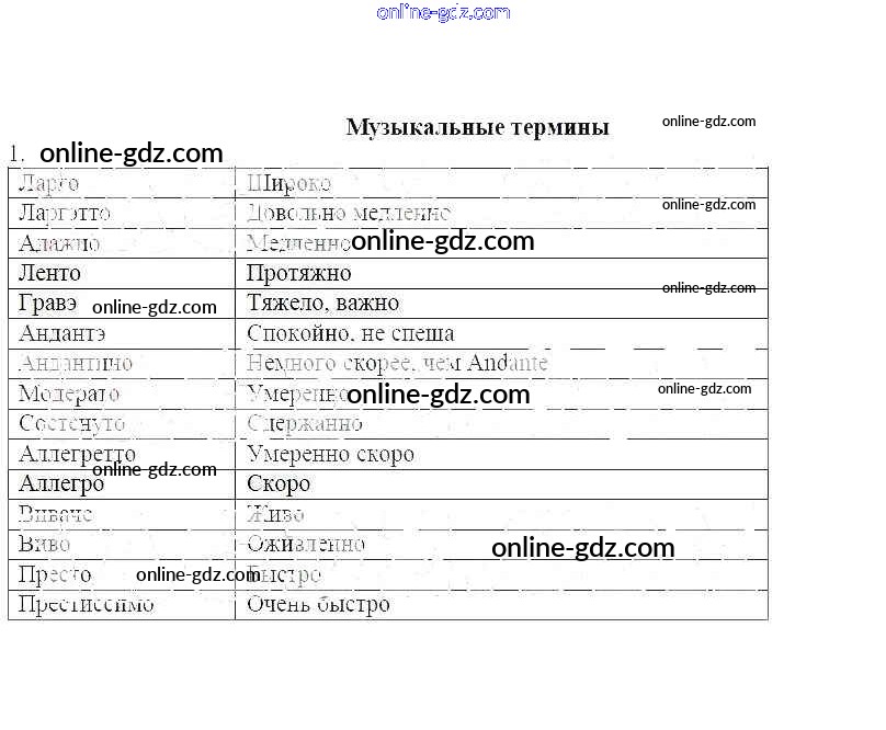Готовые домашние задания по Музыке за 7 класс Рабочая тетрадь Калинина 2017 - Музыкальные термины 1