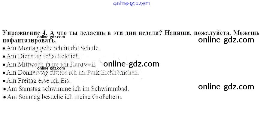 Готовые домашние задания по Немецкому языку за 3 класс Рабочая тетрадь Бим, Рыжова 2018 - Какой сегодня день недели Глава I 4