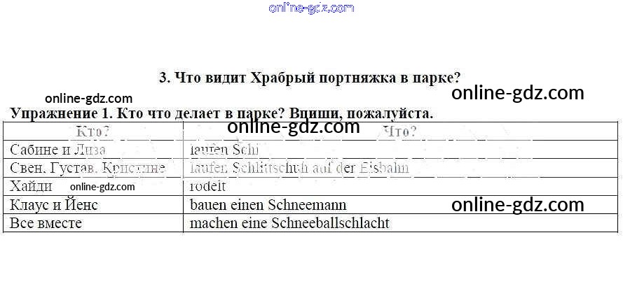 Готовые домашние задания по Немецкому языку за 3 класс Рабочая тетрадь Бим, Рыжова 2018 - Что видит Храбрый портняжка в парке Глава III 1