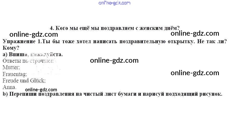 Готовые домашние задания по Немецкому языку за 3 класс Рабочая тетрадь Бим, Рыжова 2018 - Кого мы ещё мы поздравляем с женским днём Глава V 1