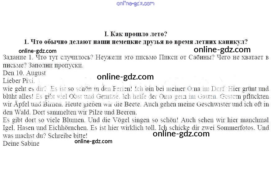 Готовые домашние задания по Немецкому языку за 4 класс Рабочая тетрадь Бим, Рыжова 2020 - Что обычно делают наши немецкие друзья во время летних каникул Как прошло лето 1