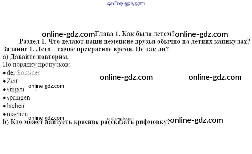 Готовые домашние задания по Немецкому языку за 4 класс Учебник Бим Академический школьный учебник 2014 - Раздел 1 Глава 1. Как было летом 1