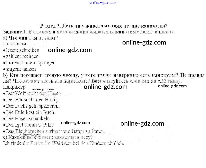 Готовые домашние задания по Немецкому языку за 4 класс Учебник Бим Академический школьный учебник 2014 - Раздел 3 Глава 1. Как было летом 1