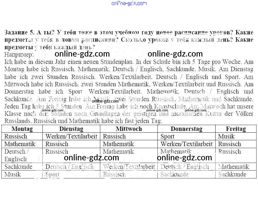 Готовые домашние задания по Немецкому языку за 4 класс Учебник Бим Академический школьный учебник 2014 - Раздел 3 Глава 2. А что нового в школе 5