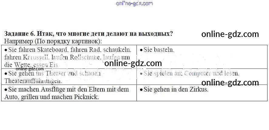 Готовые домашние задания по Немецкому языку за 4 класс Учебник Бим Академический школьный учебник 2014 - Раздел 6-7 Глава 4. Свободное время … Что мы тогда делаем 6