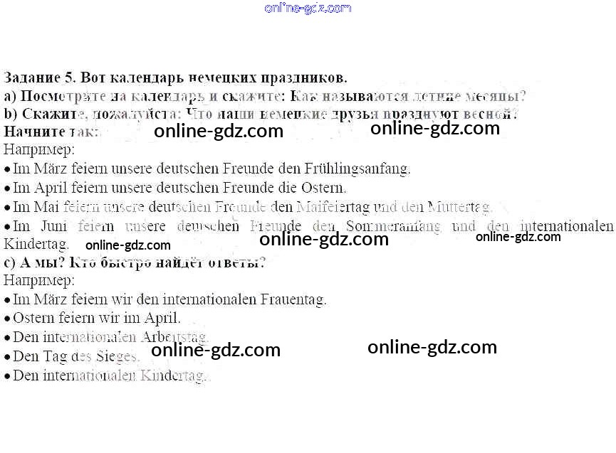 Готовые домашние задания по Немецкому языку за 4 класс Учебник Бим Академический школьный учебник 2014 - Раздел 3 Глава 5. Скоро наступят долгие каникулы 5