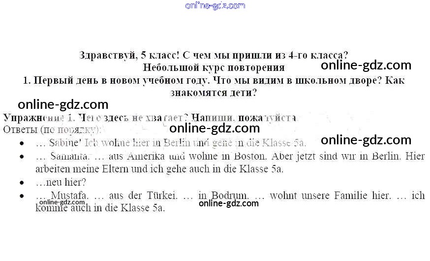 Готовые домашние задания по Немецкому языку за 5 класс Рабочая тетрадь Бим 2005 - Первый день в новом учебном году. Что мы видим в школьном дворе Как знакомятся дети Здравствуй, 5 класс! С чем мы пришли из 4-го класса. Небольшой курс повторения 1