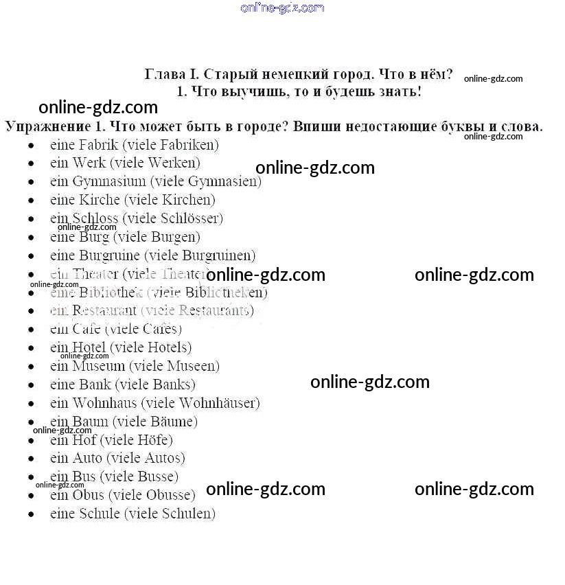 Готовые домашние задания по Немецкому языку за 5 класс Рабочая тетрадь Бим 2005 - Что выучишь, то и будешь знать! Глава I. Старый немецкий город. Что в нём 1