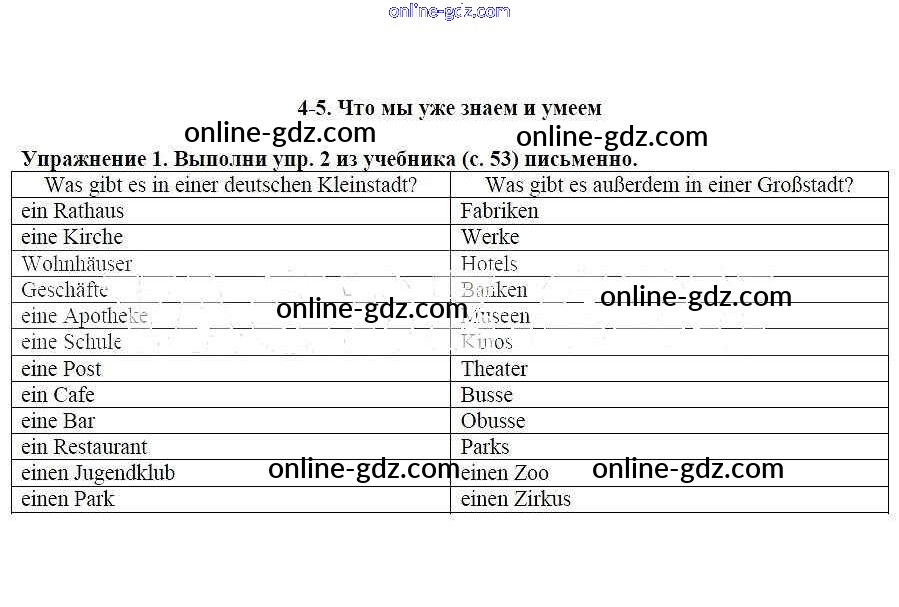 Готовые домашние задания по Немецкому языку за 5 класс Рабочая тетрадь Бим 2005 - Что мы уже знаем и умеем Глава I. Старый немецкий город. Что в нём 1