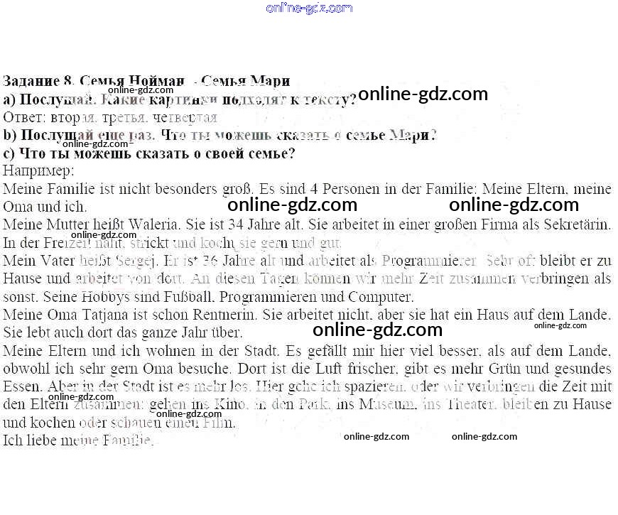Готовые домашние задания по Немецкому языку за 5 класс Учебник Аверин, Джин Horizonte 2016 - Глава 6 8