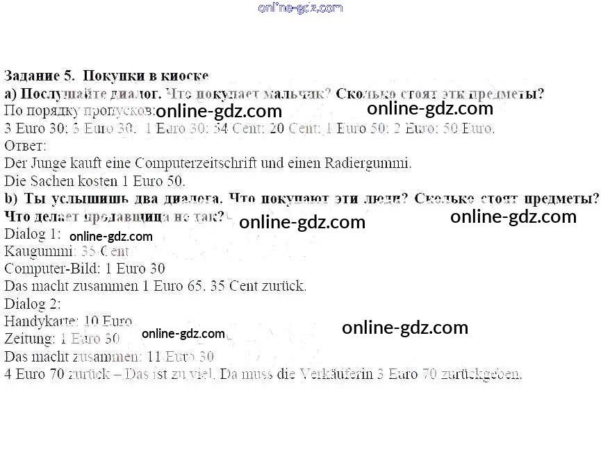 Готовые домашние задания по Немецкому языку за 5 класс Учебник Аверин, Джин Horizonte 2016 - Глава 7 5