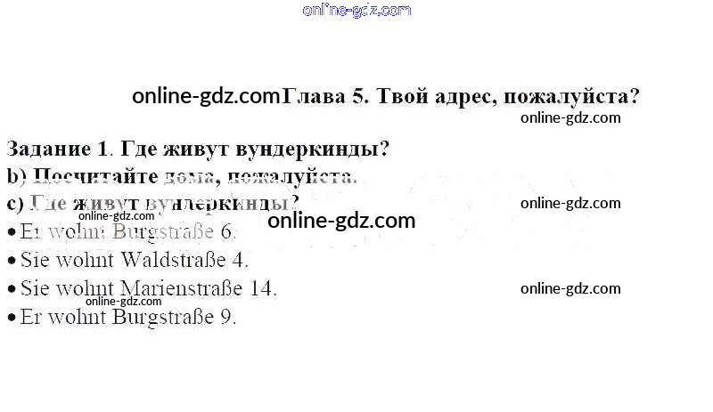 Готовые домашние задания по Немецкому языку за 5 класс Учебник Яцковская Wunderkinder 2017 - Глава 5. Твой адрес, пожалуйста 1