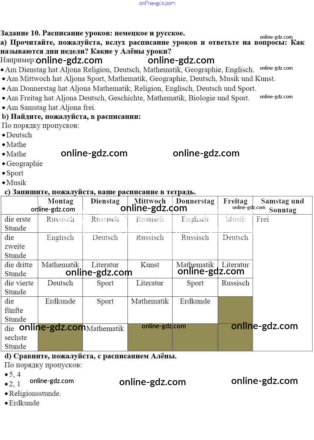 Готовые домашние задания по Немецкому языку за 5 класс Учебник Яцковская Wunderkinder 2017 - Глава 7. Завтра всё начинается 10
