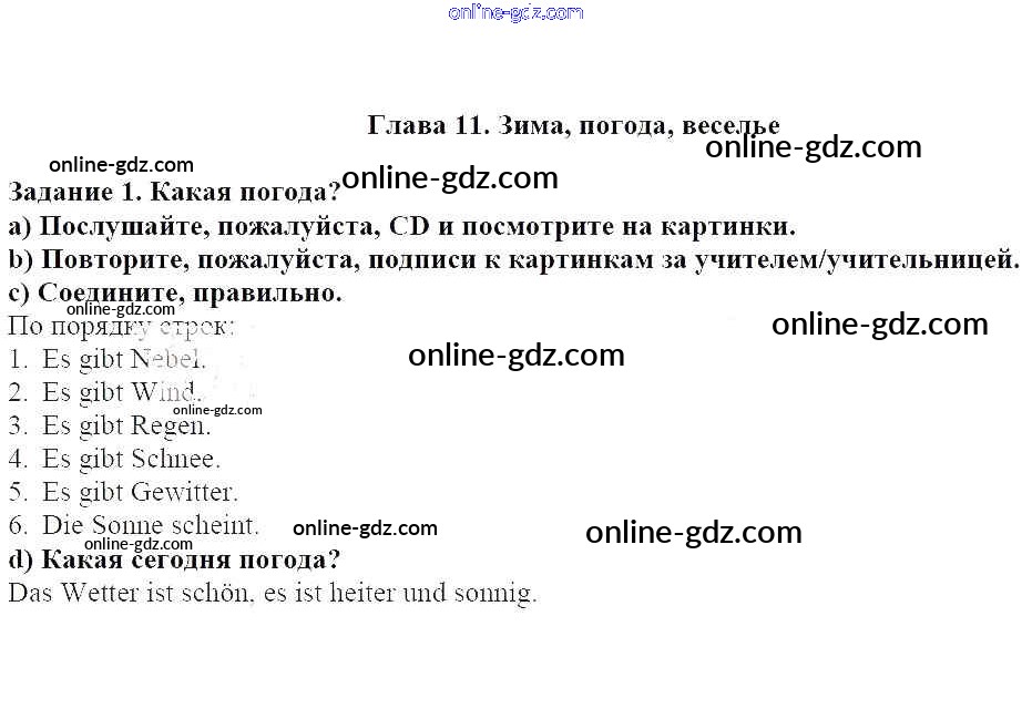 Готовые домашние задания по Немецкому языку за 5 класс Учебник Яцковская Wunderkinder 2017 - Глава 11. Зима, погода, веселье 1