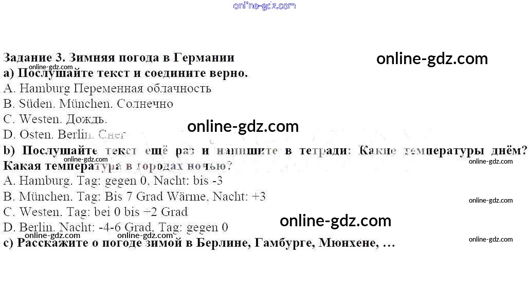 Готовые домашние задания по Немецкому языку за 5 класс Учебник Яцковская Wunderkinder 2017 - Глава 11. Зима, погода, веселье 3