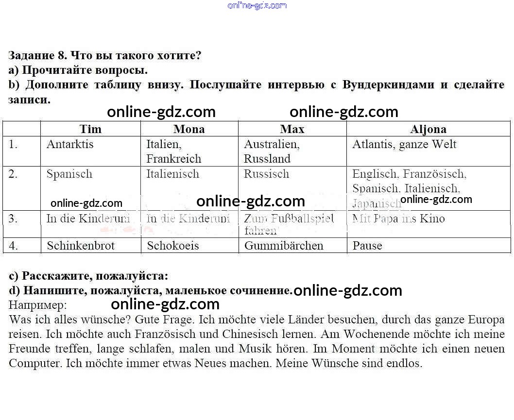 Готовые домашние задания по Немецкому языку за 5 класс Учебник Яцковская Wunderkinder 2017 - Глава 14. Вкусно! 8