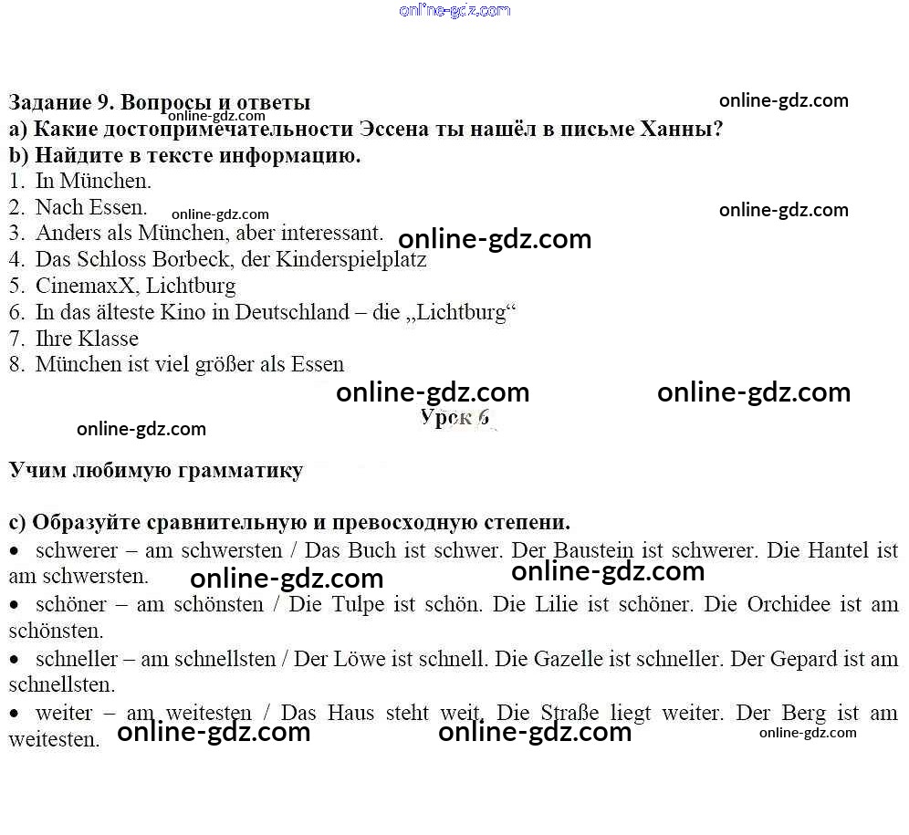 Готовые домашние задания по Немецкому языку за 5 класс Учебник Яковлева Wunderkinder Plus Углубленный уровень 2020 - Уроки 1-13 Глава 1. Город - Деревня - Река 9