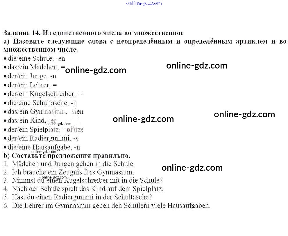 Готовые домашние задания по Немецкому языку за 5 класс Учебник Яковлева Wunderkinder Plus Углубленный уровень 2020 - Уроки 1-12 Глава 2. Школа доставляет удовольствие 14