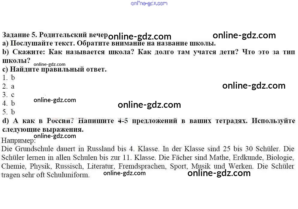 Готовые домашние задания по Немецкому языку за 5 класс Учебник Яковлева Wunderkinder Plus Углубленный уровень 2020 - Уроки 1-12 Глава 2. Школа доставляет удовольствие 5