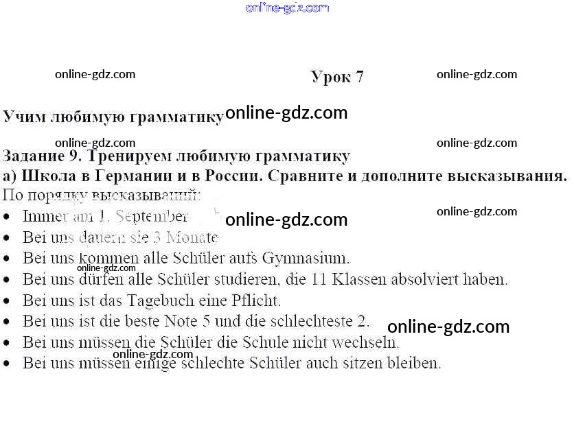Готовые домашние задания по Немецкому языку за 5 класс Учебник Яковлева Wunderkinder Plus Углубленный уровень 2020 - Уроки 1-12 Глава 2. Школа доставляет удовольствие 9