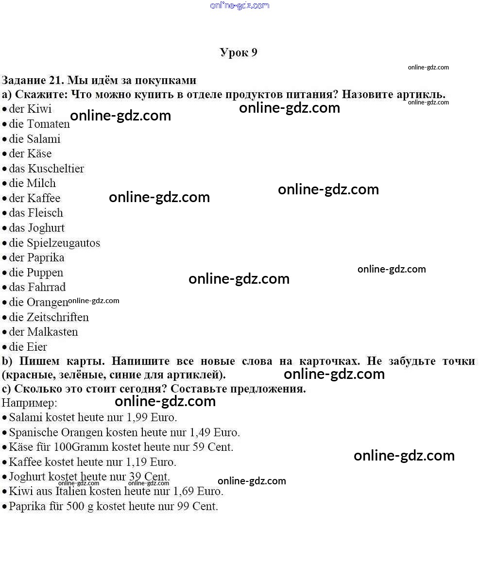 Готовые домашние задания по Немецкому языку за 5 класс Учебник Яковлева Wunderkinder Plus Углубленный уровень 2020 - Уроки 1-14 Глава 3. Делаем покупки в магазине и на рынке 21
