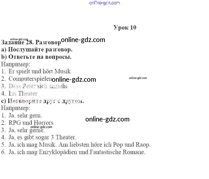 Готовые домашние задания по Немецкому языку за 5 класс Учебник Яковлева Wunderkinder Plus Углубленный уровень 2020 - Уроки 1-13 Глава 6. Хобби и игра 28