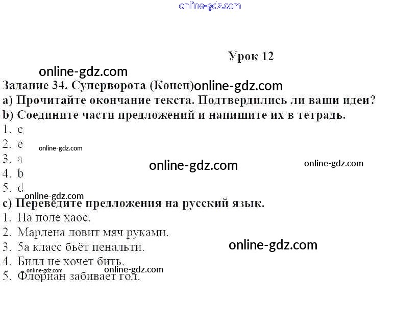 Готовые домашние задания по Немецкому языку за 5 класс Учебник Яковлева Wunderkinder Plus Углубленный уровень 2020 - Уроки 1-13 Глава 7. Спорт - это круто! 34