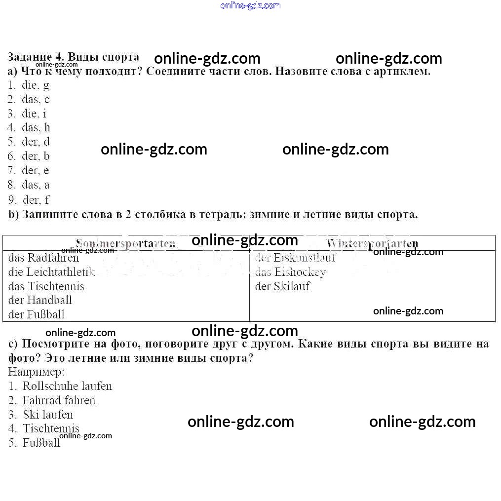 Готовые домашние задания по Немецкому языку за 5 класс Учебник Яковлева Wunderkinder Plus Углубленный уровень 2020 - Уроки 1-13 Глава 7. Спорт - это круто! 4