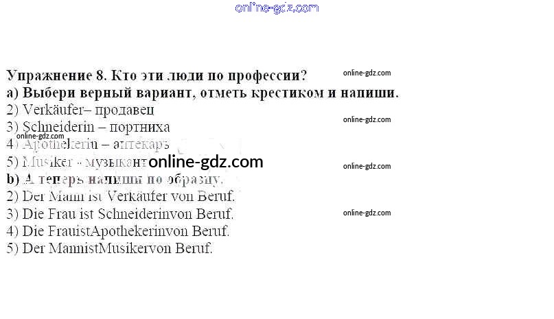 Готовые домашние задания по Немецкому языку за 6 класс Рабочая тетрадь Бим, Фомичева 2008 - Здравствуй, школа 8