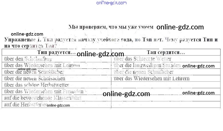 Готовые домашние задания по Немецкому языку за 6 класс Рабочая тетрадь Бим, Фомичева 2008 - Мы проверяем, что мы уже умеем Глава 1. Начало занятий в школе 1